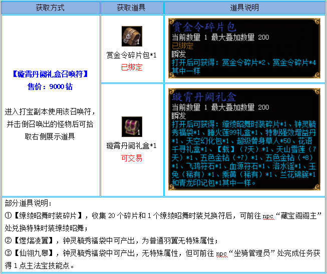 1、【璇霄丹阙礼盒召唤符】仅限钻石商城购买,通过摆摊购买、互相交易、邮件领取、拍卖购买等非钻石商城购买方式获得的,不计算在活动内;