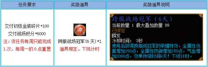 活动期间,将会临时开启跨服战场活动,等级达到61级的角色可接取以下任务(活动期间战场狂热者任务不开放):
