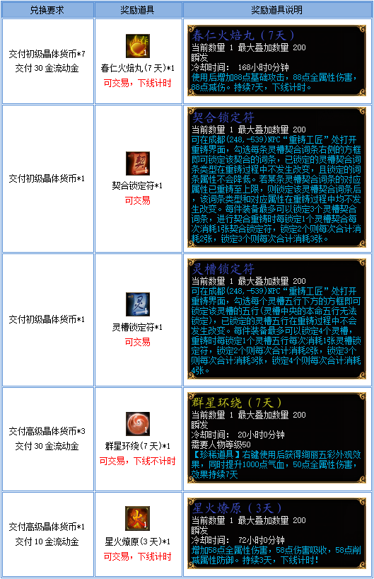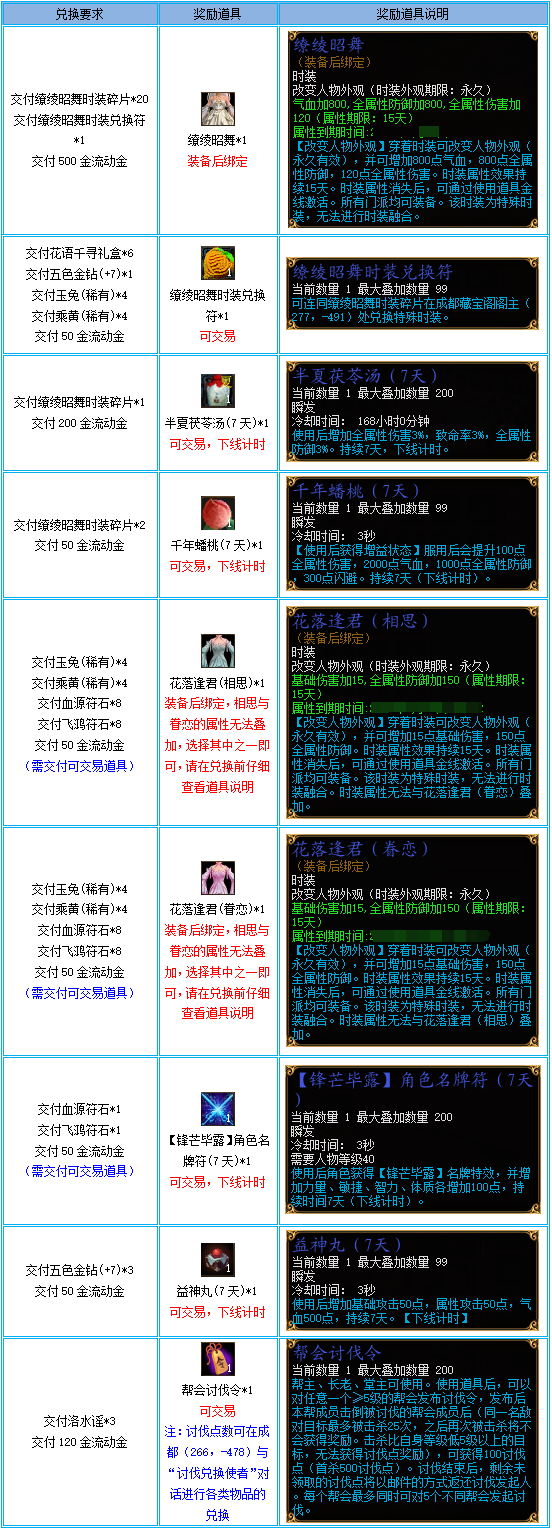3、活动结束后所有道具将会下架,请有需要的玩家抓紧时间兑换!
